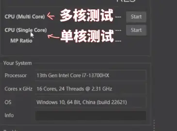 - 左上角第一个多核测试【多核用于渲染等设计软件】
