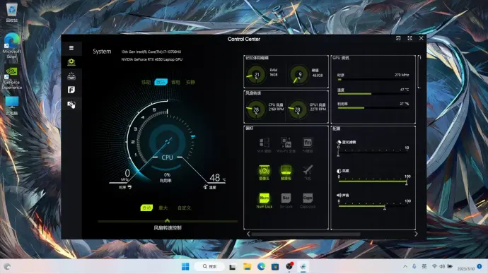 - 打开任务栏——打开电脑自带控制中心软件——找到切换GPU选项,切换独显【独显更好的游戏性能】