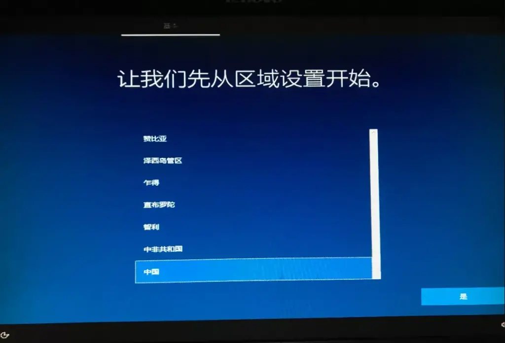 - 选择”区域”,我这里默认中国不需要更改,点击“是”