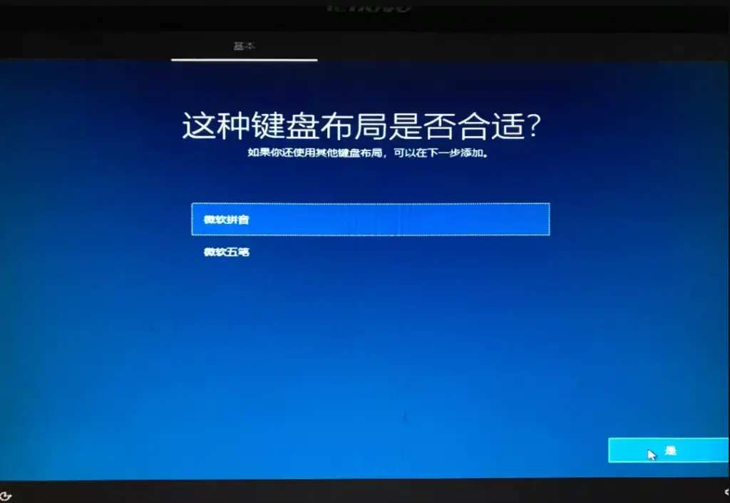 - 个人习惯拼音,所以直接点击“是”