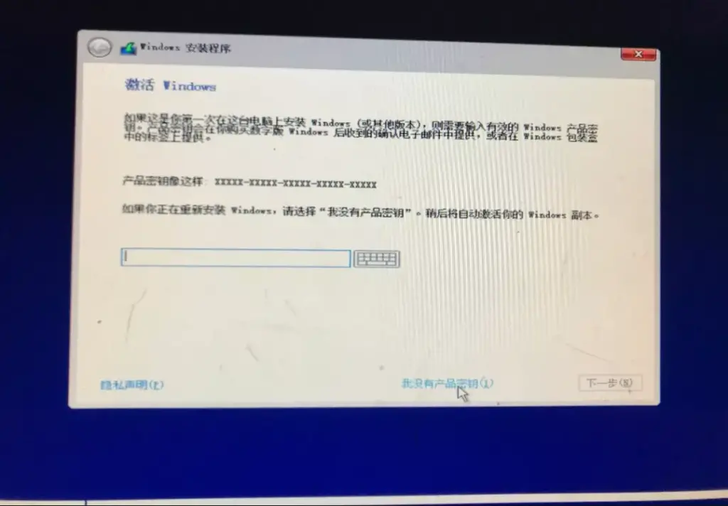 - 由于没有密钥,选择我没有产品密钥即可