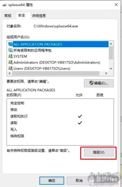 • 接下来点击安全选项卡,然后再点击“高级”按钮