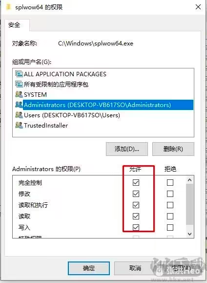 • 选择之前我们加入的账号,然后把下面的权限设置为全部允许,然后点击确定